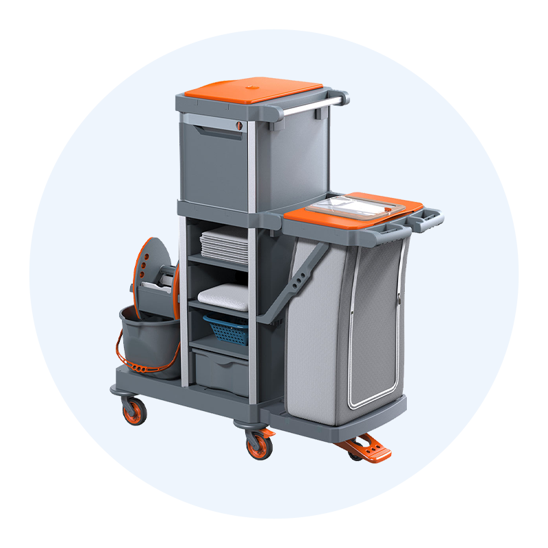 تروليات النظافة: (تروليات خدمة الغرف، تروليات المغسلة، تروليات فندقية بتصميمات مدمجة).